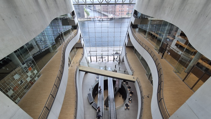 Bezoek The Black Diamond, de openbare bibliotheek van Kopenhagen. Supergaaf gebouw, een mix van oud en nieuw en geïnspireerd op de 4 elementen (water, vuur, aarde en lucht).
